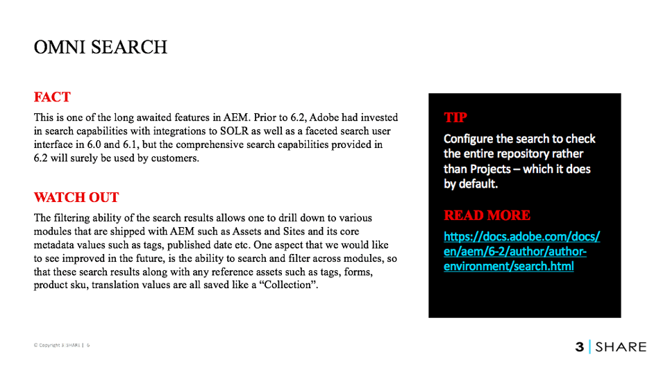 The 3|SHARE team has experience with hundreds of Adobe Experience Manager projects. If we can help you with consulting, training, or remote operations management for AEM, please contact us.